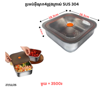 ប្រអប់អ៊ីណុក4ជ្រុងក្រាស់ SUS 304