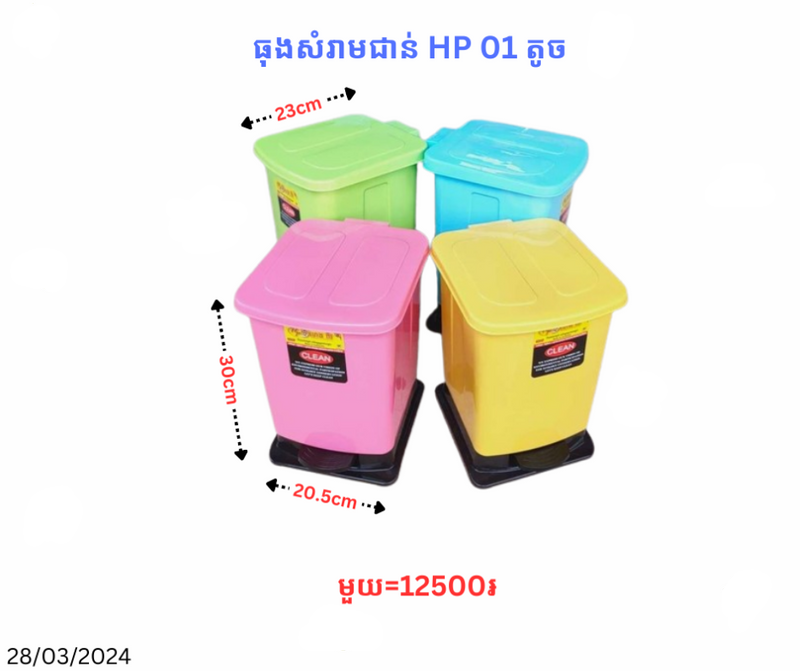 ធុងសំរាមជាន់ HP 01 តូច December 23, 2025 Posted in 12500, HP, ធុងសំរាម, ធុងសំរាមជាន់, ធុងសំរាមជាន់ HP