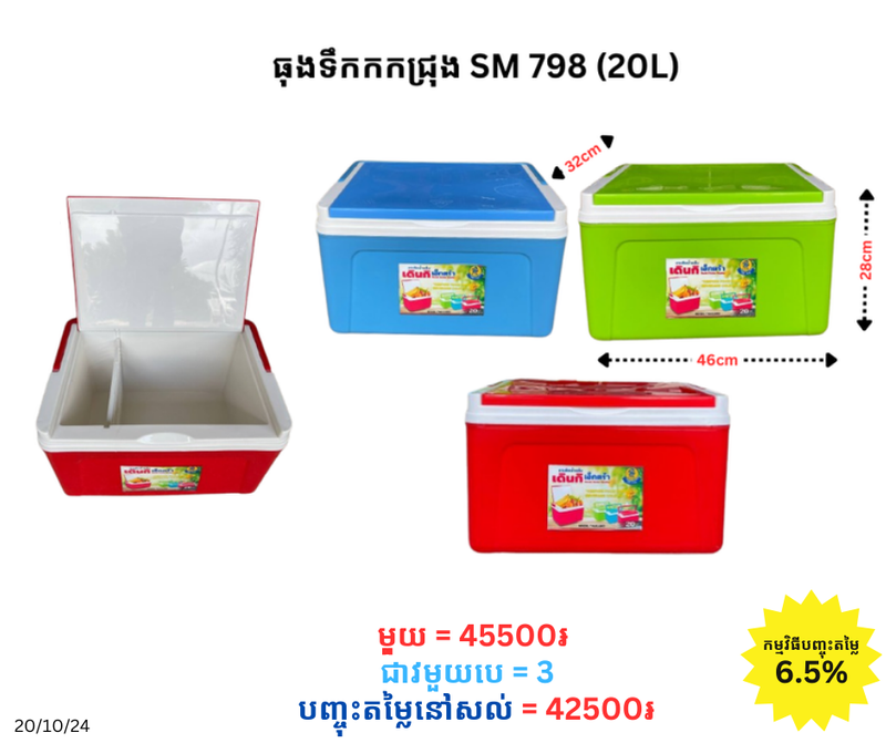 ធុងទឹកកកជ្រុង SM 798 (20L)